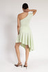 Falda circular de tejido de punto asimétrica, costado izquierdo más corto. Mini short de la misma tela debajo de la falda. Confeccionado artesanalmente en México.