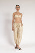 Pantalón tipo balloon de tafeta de seda con bolsillos en los costados. Cinta a media cintura para ajustar el pantalón. Confeccionado artesanalmente en México.